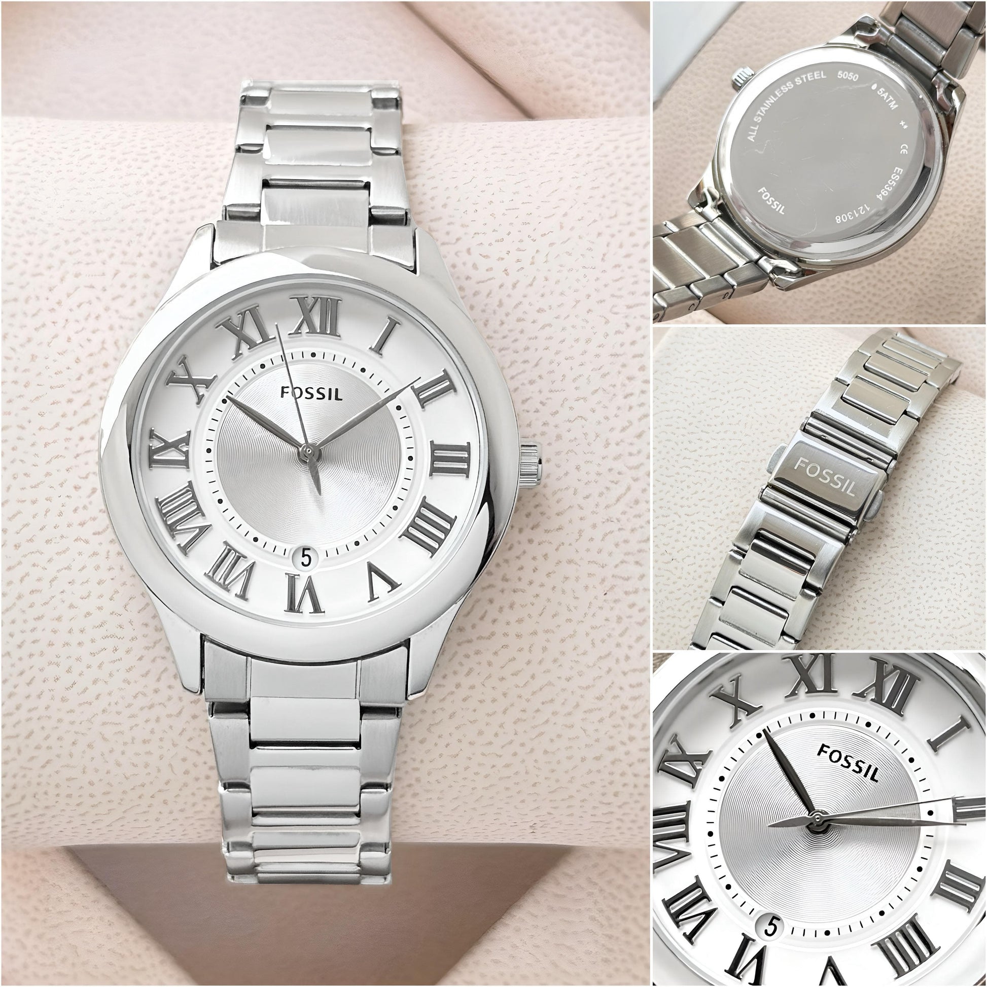 With its clean design, reliable quartz movement, and sophisticated Roman numeral dial, the Fossil Gilmore ES5393 is a perfect choice for women who value style and simplicity. Packed in a Fossil premium hard case brand box and backed by a 1-year machinery warranty, it is a graceful addition to any watch collection."Our sale will be considered complete only if you receive the parcel safely."
